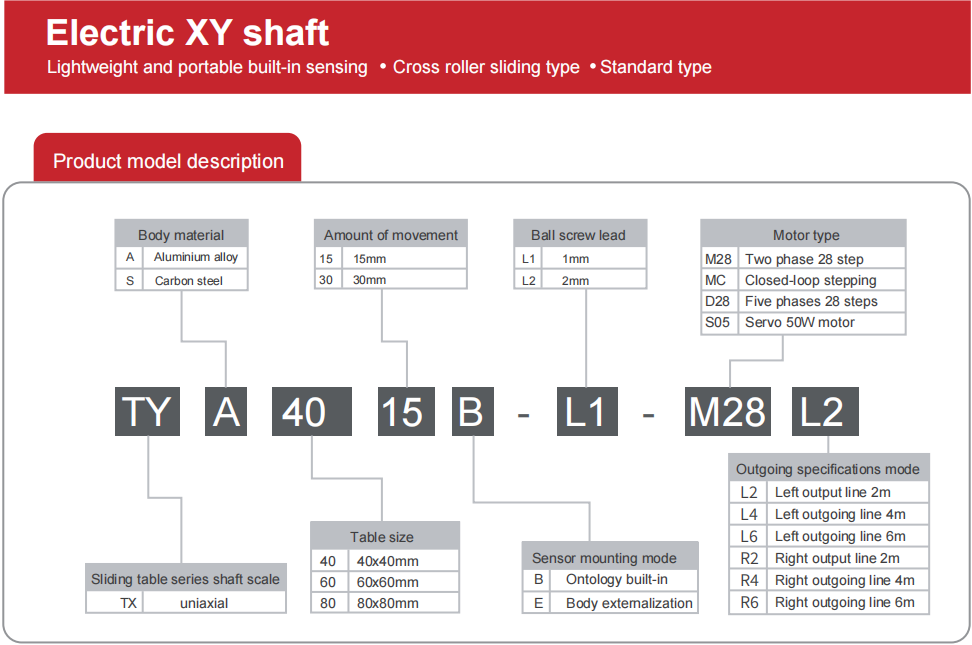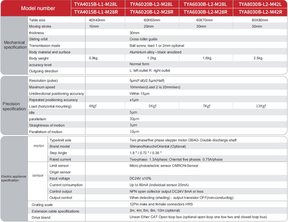 전기 XY 축 알루미늄 합금 TYA 시리즈