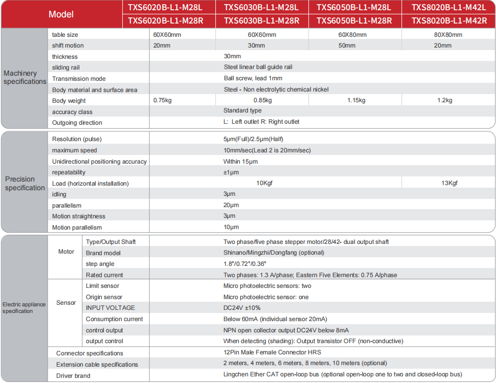 전동 X축 스테인리스강 TXS 시리즈