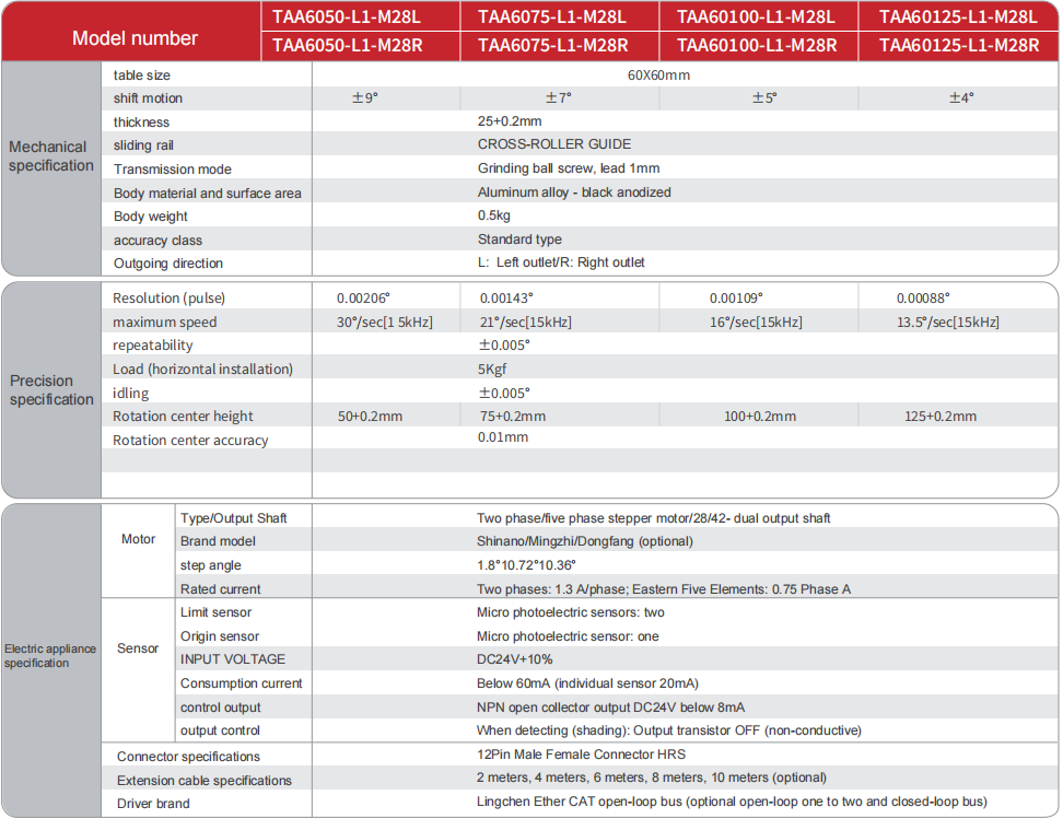 전기 고니오메트릭 α축 TAA 시리즈