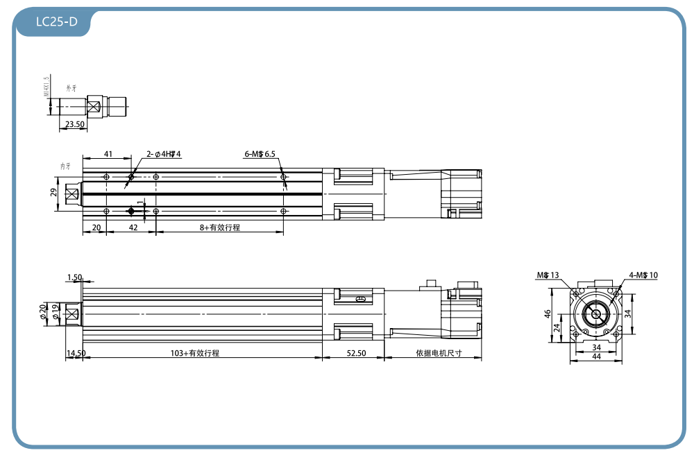 전기 실린더는 서보 모터와 스크류 로드를 통합하고 서보 모터의 회전 운동을 선형 운동으로 변환하고 서보 모터의 가장 큰 장점인 정밀한 속도 제어, 정확한 회전 수 제어 및 정밀한 토크 제어를 정밀한 속도 제어, 정밀한 위치 제어 및 정밀한 추력 제어로 변환합니다. 일련의 고정밀 직선 운동을 실현하는 새로운 혁신적인 제품입니다.