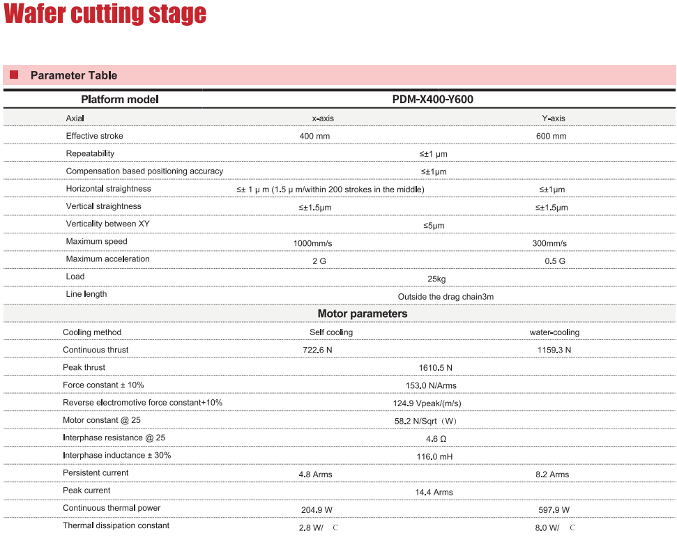 정밀 선형 가이드, 초 고정도 직진도, 개방형 구조, 낮은 측면 높이, 더 나은 형상 및 더 높은 하중 지지력과 같은 제품 기능. XY 통합 설계 다이렉트 드라이브 플랫폼은 수평 직진도가 ±1um 미만이며 중앙 집중식 오일 주입 및 금속 접지와 같은 보조 기능을 갖추고 있어 웨이퍼 다이싱 및 웨이퍼 검사와 같은 다양한 반도체 산업에 적합합니다. 고객 요구를 반영하여, 스트로크, 하중, 특수 구조 등에 따라 평가 및 맞춤화할 수 있습니다.