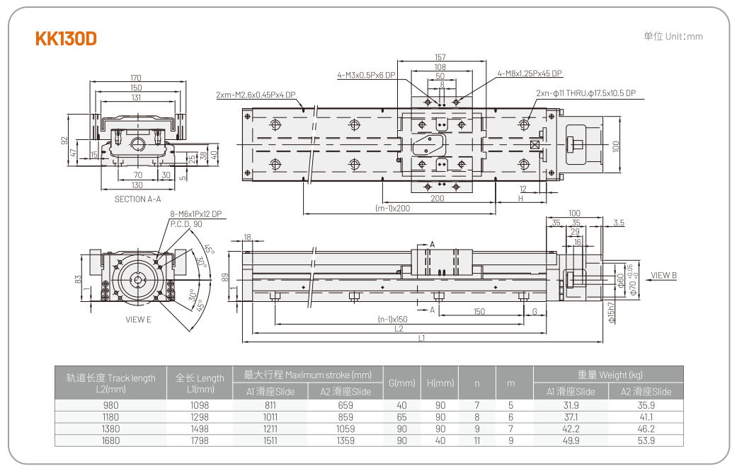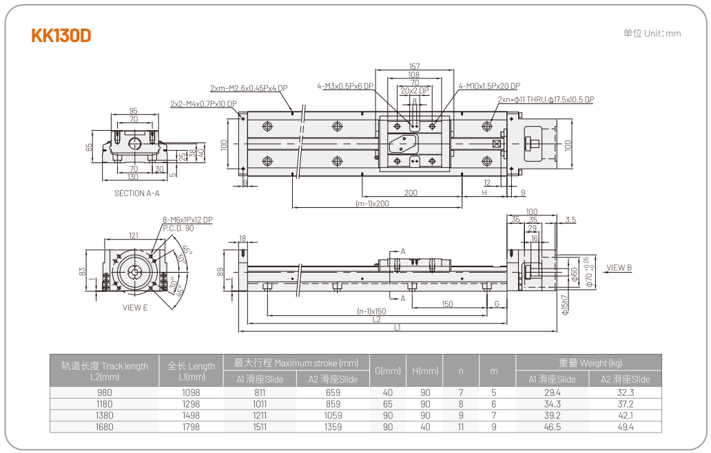 KK 단축 로봇은 모듈형 설계를 통해 볼스크류와 리니어 가이드를 통합하여, 고정밀·고강성·소형화·공간 절약 등의 특장점을 제공합니다.고정밀 볼스크류를 구동 메커니즘으로, 최적화된 U자형 트랙을 가이드 메커니즘으로 채택함으로써 우수한 정밀도와 강성을 실현하며, 빠른 설치와 간편한 선택이 가능합니다.
