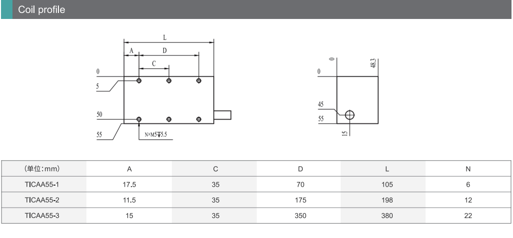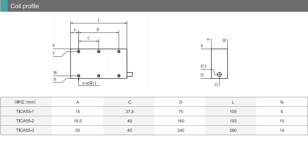 TICA55 코어 리니어모터 TICA 시리즈